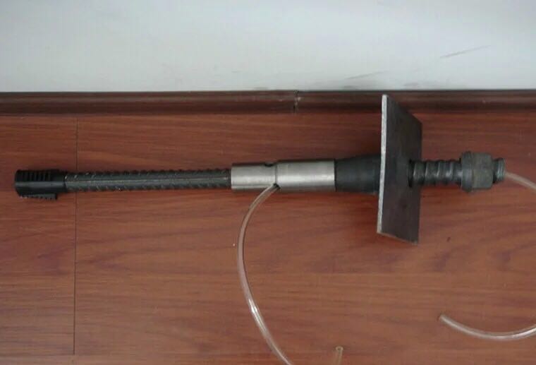 锚杆分为自进式注浆工艺技术,其结构组成则是由止浆塞、自进式钻头、螺母、连接套、垫板,还有最重要的一个是中空锚杆体。其中需要用的零件是钎尾式的连接套可以用来与手风钻相连,还有帮助注浆的接头。在那种岩层中可以保持长久支撑,不被破坏。它的外观很特别,中间空心结构,外部形成一种波纹型螺纹并凹凸不整。垫板结合螺母是对岩层的支撑能力起到更有效的结果。并将钻头安放在锚杆上,连接套便于锚杆体的长度增加和钻进